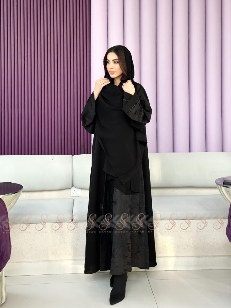 - عباية كريب مع النقاب والطرحة المجانية، ستكونين دائماً مستعدة للخروج بأناقة.