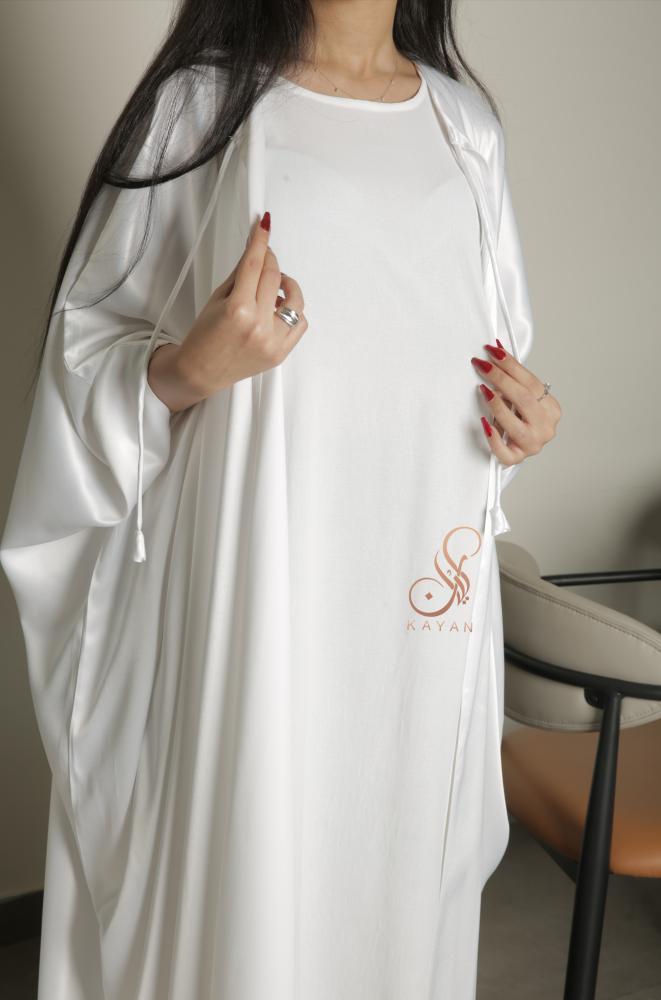 فستان عباية ابيض قطعة أنيقة وفخمة تتميز بتصميمها العصري والراقي ، مصنوعة من خامات عالية الجودة تضمن الراحة والأناقة في الارتداء ، هذه العباية مثالية للمناسبات الخاصة والأماكن التي تتطلب الأناقة والتميز ، احصلي عليها من متجركيان بأفضل الأسعار ، حتي تضفي لمسة من الأناقة والفخامة على مظهرك ، يصنع الفستان من مواد ذات جودة عالية توفر الراحة والمتانة .